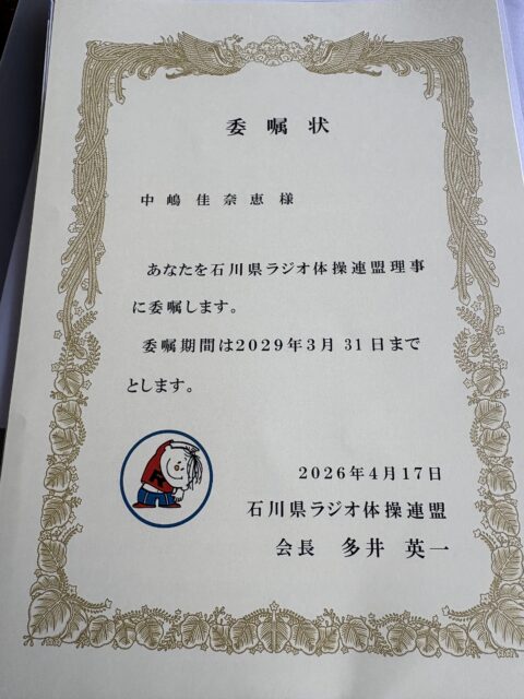 石川県ラジオ体操連盟理事になりました。